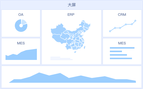 • 同一個大屏看板可以輕松整合ERP/OA/MES等多業(yè)務(wù)系統(tǒng)的數(shù)據(jù),打破信息孤島,進行綜合展示分析,讓決策更清晰